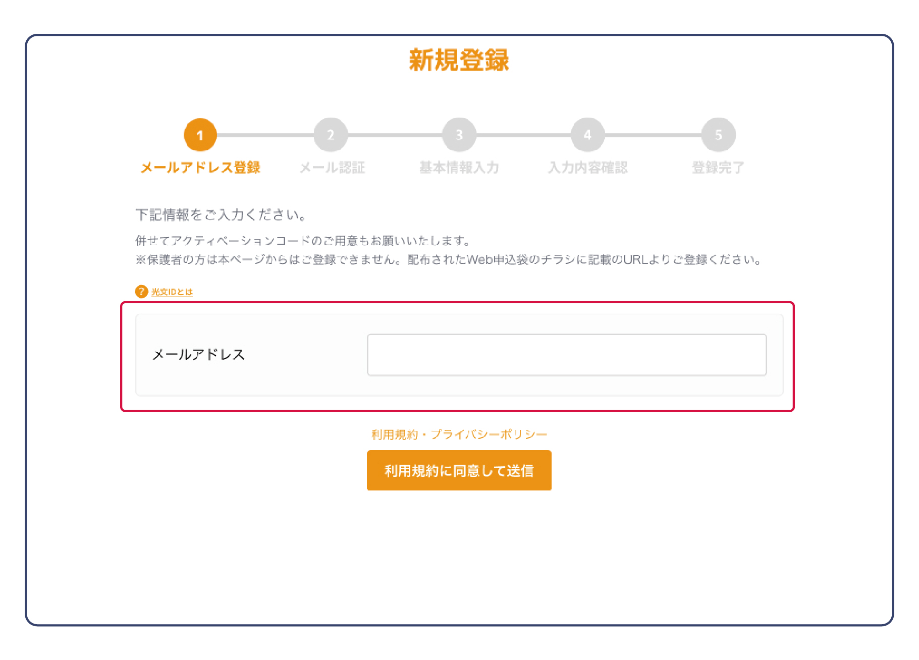 ・メールアドレスを入力し、利用規約をご確認いただいてから、[利用規約に同意して送信]を押してください。